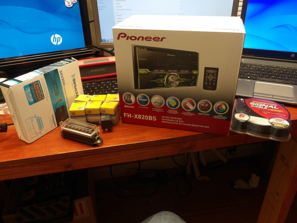 Here is the new headunit, double din. It’s time to cut up the dash and wire the relays and fuse panel.